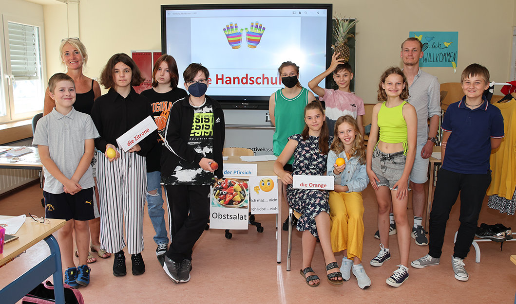 Schließlich machte das Unterstützungsangebot in den Ferien auch nicht vor sprachlichen Grenzen Halt. In einem Sprachkurs für die ukrainischen Schüler, die seit einigen Wochen die RSB besuchen beziehungsweise ab nächster Woche besuchen werden, sollten Sprachbarrieren verringert und kommunikative Hemmschwellen abgebaut werden. Besonders wichtig war den beiden Lehrkräften, dass durch intensive Wortschatzübungen und die Anwendung des Erlernten in alltäglichen Dialogsituationen ein aktiver Beitrag zur gesellschaftlichen Integration allgemein, aber auch zur sanften Eingliederung in die Schulgemeinsaft der RSB geleistet werde.