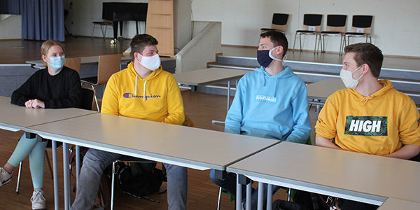 [Sarah, Marwin, Simon und Linus hoffen im nächsten Jahr Abitur zu machen, ohne dass Corona weiter dazwischenfunkt.]
