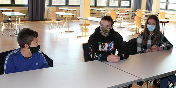 Die Maskenpflicht auf dem Schulgelände, auch während des Unterrichts, sei kein Problem für die meisten Schüler. Annika Herwig (8c): „Die merken wir gar nicht mehr.“ Wenn sie doch mal vergessen werden, weisen sich die Schüler gegenseitig darauf hin. Um sich auf das ständige Lüften einzustellen, hätten manche Schüler inzwischen Decken mit im Unterricht. „Andere Unterschiede zu vorher gibt es im Unterricht nicht, es ist normal geworden“, sagt Marwin. Anders ist das beim digitalen Unterricht, wo sich die Schüler viel selbst erklären müssten, oder sie fragen Geschwister oder Eltern.