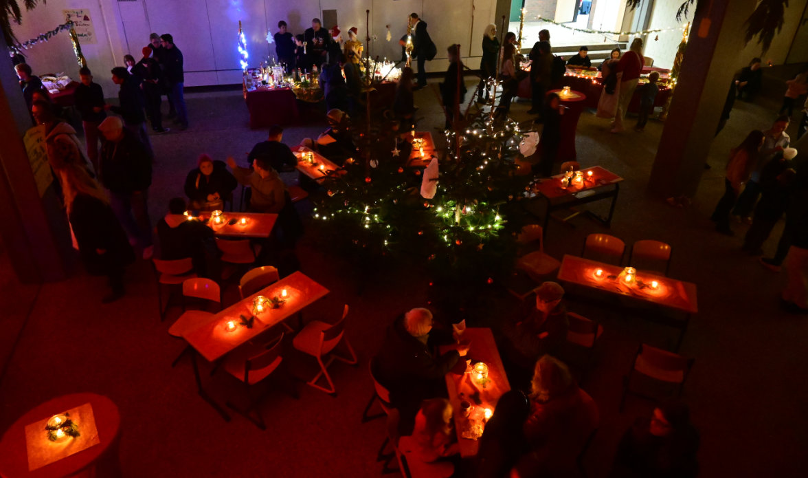 Begleitet wurde die Veranstaltung von einem Lichtermarkt, organisiert von Sabrina Schlegel und David Römers, an dem selbst gestaltete Produkte angeboten sowie Kinderpunsch und Kakao ausgeschenkt wurden. Für einen reibungslosen Ablauf sorgte zudem das Technikteam der Schule, das schnelle Umbauten und eine stimmige Lichtgestaltung ermöglichte.