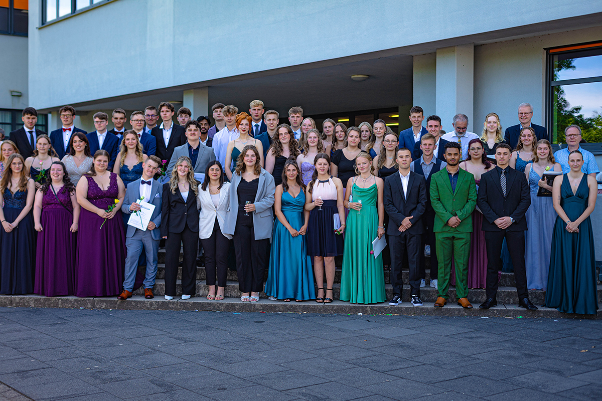 Auch für Schulleiter Wolfgang Krug war es ein besonderer Jahrgang: es war sein letzter, den er begleitet hat. Krug geht im Sommer in den Ruhestand. Bürgermeister Stefan Meisenberg erwies den jungen Leuten seine Reverenz und drückte sehr persönlich zum Ausdruck, dass man auch mit einem mittelmäßigen Abitur Bürgermeister werden kann. Durch das rund zweistündige Programm moderierten die beiden Abiturienten Henritte Tschernich und Christopher Welter. Neben den Ehrungen in Physik, Mathematik und Philosophie wurden auch die drei besten Abiturienten ausgezeichnet: Lennart Tsolakidis, Lisa Wittwer und Lena Höpfner.