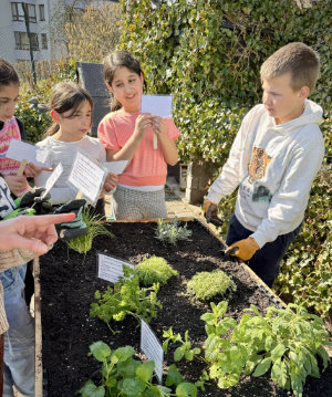Am zweiten Tag stand das Pflanzen im Mittelpunkt: Gemeinsam mit Apothekerin Sandra Guitton von der Markt Apotheke setzten die Kinder Heil- und Küchenkräuter wie Kamille, Salbei, Thymian und Petersilie ein. Dabei erfuhren sie, welche Wirkung die einzelnen Pflanzen auf die Gesundheit haben. „Wir möchten, dass Kinder die heilende Kraft von Pflanzen entdecken können. Am besten lernt man das draußen mit den Händen in der Erde“, sagte Guitton.