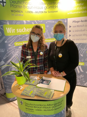 [Iris Ermert-Berg und Celina Camassa vom Pfarrer Braun-Haus in Lindlar informierten über Chancen in den Pflegeberufen.]