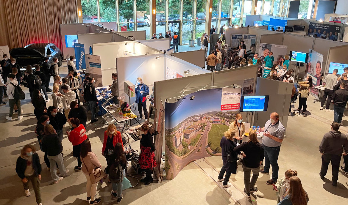 Ganz ins kalte Wasser geschmissen wurde die Nachwuchskraft dabei nicht, sondern sie griff auch auf die Erfahrungen ihrer Vorgänger zurück - das "Career Dating" fand heute bereits zum zehnten Mal statt. Mit dabei waren auch Vertreter der größten Oberbergischen Arbeitgeber, wie S&C, Pferd, Unitechnik oder Oni sowie Banken und Handwerksbetriebe. Der Rheinisch-Bergische Kreis war ebenfalls vor Ort, der Oberbergische Kreis war zudem mit dem Impfmobil vor dem Eingang vertreten. Klaudia Rzechaczek, Marketingdirektorin bei Lang, freute sich, dass mehr Aussteller als im vergangenen Jahr an Bord geholt wurden. „Insbesondere die Pflegeberufe gewinnen wieder mehr an Bedeutung“, sah sie einen Grund für den Anstieg. Aber auch die nunmehr gelockerten Coronabedingungen hätten für mehr Nachfrage gesorgt.