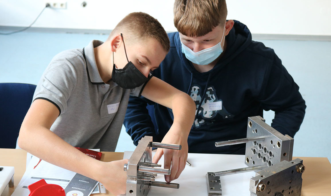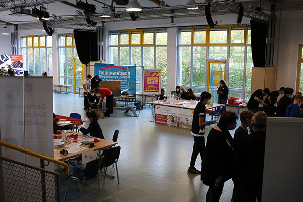 Bei dieser „praktischen Berufsorientierungsmesse“ kommen laut Mitteilung 240 Schüler aus dem 8. und 9. Jahrgang mit Ausbildern und Azubis aus verschiedenen Berufsfeldern in der Mensa der Gesamtschule zusammen. Dort durchlaufen die Lernenden einen Berufsparcours, in welchem sie Ausschnitte der möglichen Berufsfelder und Ausbildungsinhalte kennenlernen. Ziel sei es, die Schüler mit typischen Tätigkeiten bekannt zu machen, damit sie sich leichter für ein Praktikum entscheiden können – die schon oft während der Veranstaltung vereinbart werden.