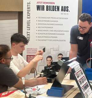 Mit einer Koordinationsübung im echten Bagger buhlt das Bauunternehmen Gerhard Müller um geeigneten Nachwuchs, eine elektropneumatische Steuerung soll den künftigen Nachwuchs bei Ahle Federn begeistern. Herzen aus Schiefertafeln können beim Dachdeckerbetrieb Bernd Schnellenbach gezimmert werden.