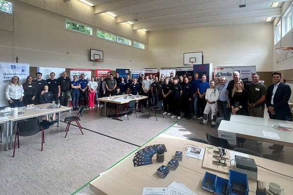 In der Sporthalle und auf dem Schulhof fanden jeweils 20-minütige „handlungsorientierte Praxisübungen“, so die Bezeichnung seitens des Veranstalters, aus unterschiedlichen Gewerken statt. „Früher haben uns die Mitgliedsunternehmen mit Informationsmaterial unterstützt, heute gehen sie aktiv auf die jungen Menschen zu“, sagte OK-Berufsorientierungscoach Susanne Reissner. Der Fachkräfte- und Nachwuchsmangel sei längst bei den hiesigen Unternehmen angekommen.