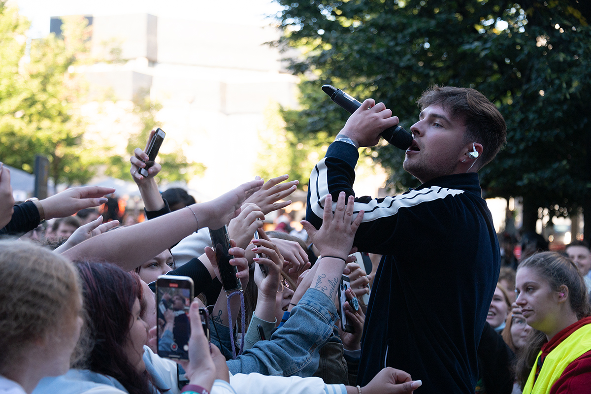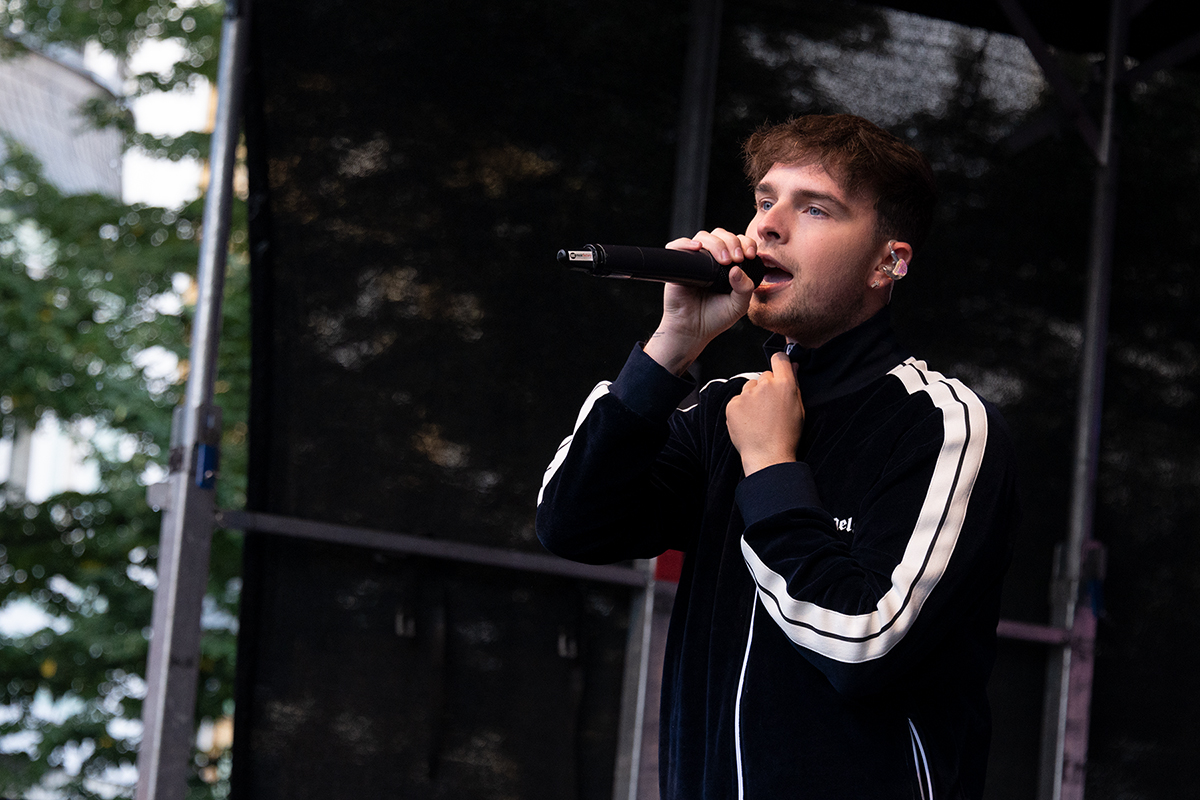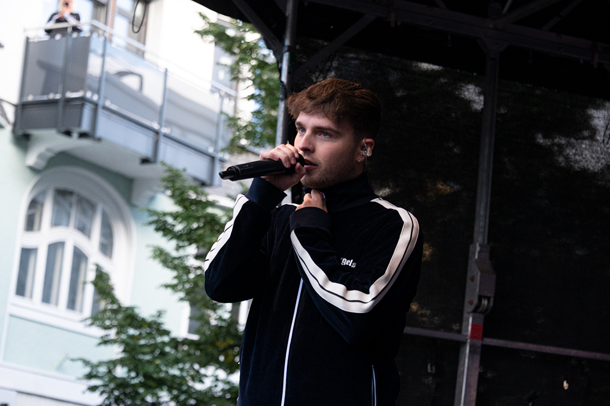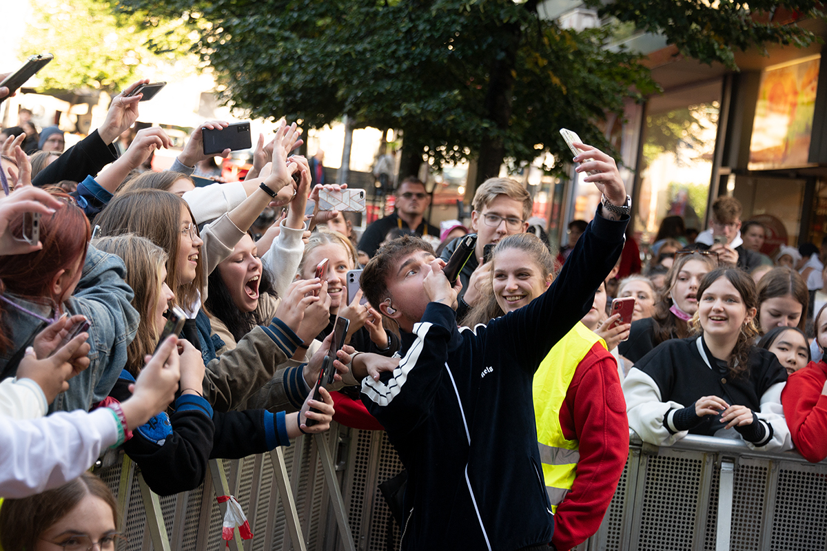 Zwei Mädchen standen schon ab dem Aufbau am Vormittag an der Absperrung und trotzten den heftigsten Regenschauern. Singer erzählte von seinem Video-Dreh am Lago Maggiore für sein neustes Lied „Billie Eilish“ - selbst das konnten nicht nur die Mädchen in der ersten Reihe textsicher mitsingen. Bei seiner Version von „Verdammt ich lieb dich“ und „Ohne Dich – schlaf ich heut Nacht nicht ein“ sangen auch die Frauen vom Ordnungsamt mit.