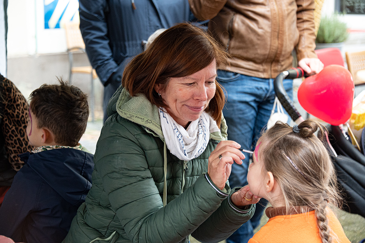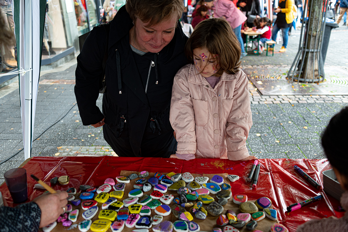 Angelehnt an das „Fest der Farben“ führte die Agentur GMerleben die Tour der Farben durch. Eine Rallye quer durch die Innenstadt, bei der alle möglichen Geschäfte mitmachten und insgesamt sieben Stempel gesammelt werden mussten. „Fest der Farben“ passte auch hervorragend zu den Schminkständen – viele Kinder ließen sich gerne bunt anmalen, ob mit phantasievollen Ranken, Blumen oder Sternen, oder auch als Tiger oder Clown.
