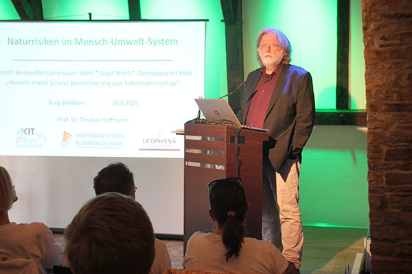 Prof. Dr. Hoffmann legte Wert darauf, dass die Natur nicht aus Rache zurückschlage. Trotzdem agiere der Mensch in diesem System als Provokateur und auch Auslöser mancher Naturereignisse. Auch hier könne der Mensch ansetzen, wenn es darum gehe, Naturereignisse vielleicht in ihren Folgen abzumindern – indem beispielsweise genug Retentionsflächen existieren oder Gebäude in etwaigen Region erdbebensicher gebaut würden – er verwies hier auf die Probleme in Istanbul.