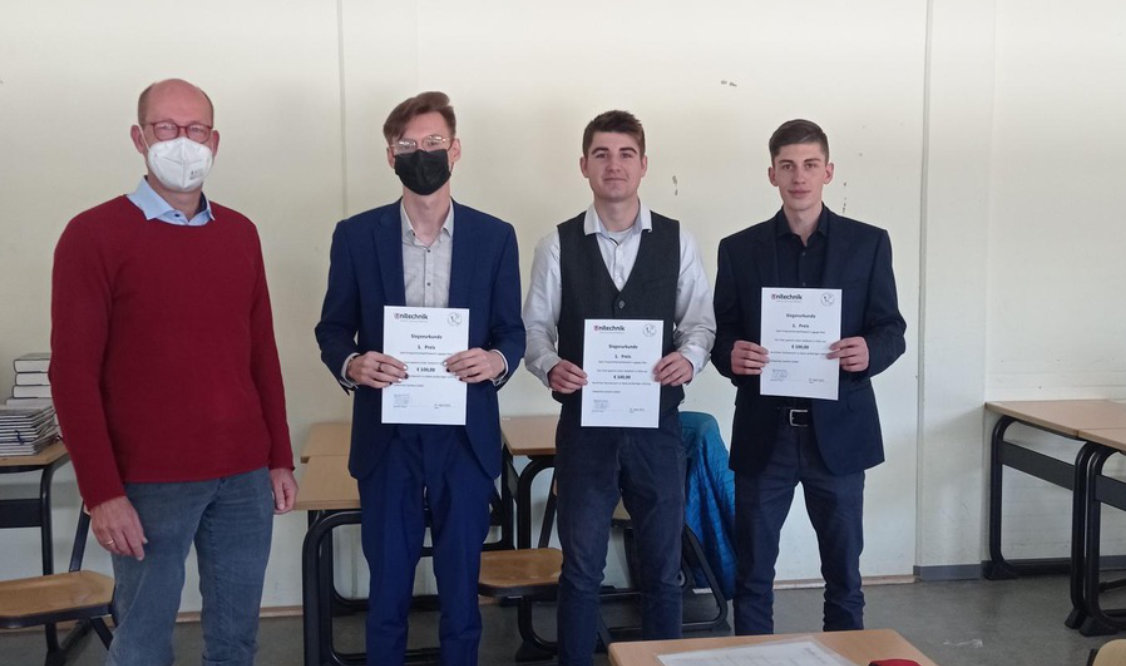 Die Teams mussten ihre Ergebnisse einer Jury vorstellen, die aus Schulleiter Thorgai Wilmsmann, Fachlehrer Markus Dreier, Torsten Hertel, Ausbilder bei Unitechnik, sowie aus einem Auszubildenden bestand. Der dritte Platz und ein Preisgeld von 50 Euro ging an das Team um Tobias Schuller und Kai Müller. Den zweiten Rang belegte das Team um Maximilan Lutz, Finn Greeb und Maximilian Zimmermann, die 75 Euro erhielten. Der Sieg und ein Preisgeld von 100 Euro ging an das Team um Daniil Barouski, Yannick Zahn und Samuel Loyek.