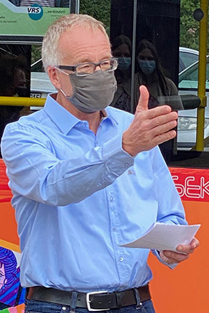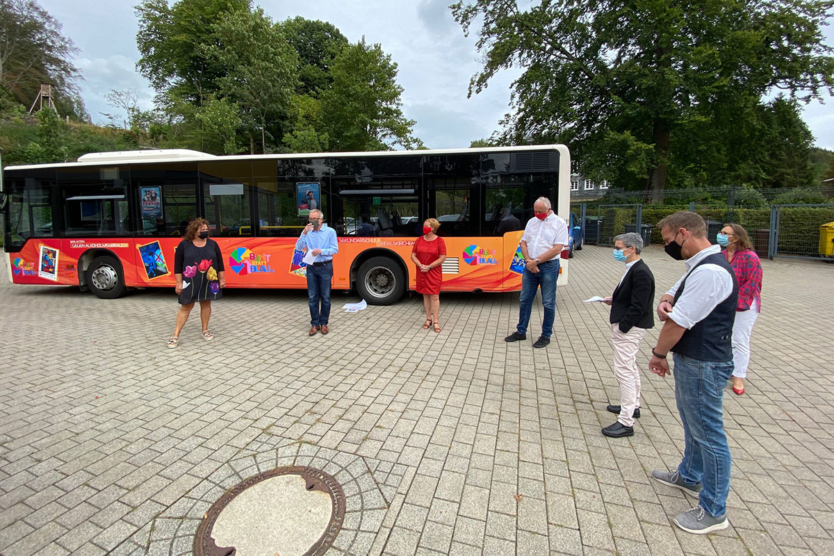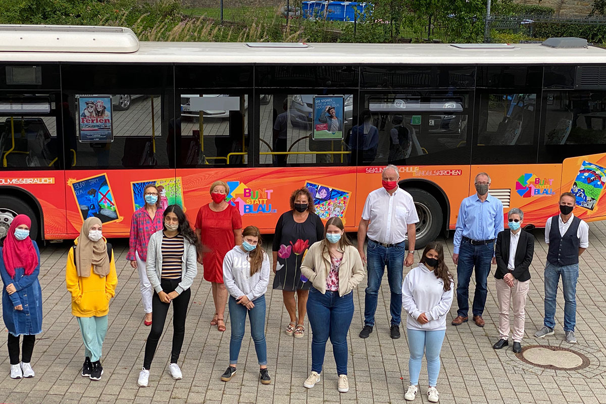 Schuldirektorin Claudia Lengen-Mertel zeigte sich stolz darüber, dass ihre Schüler den Bus unter der Leitung von Dagmar Shamekhi gestalten durften. Ihr Dank galt vor allem Wolfgang Brelöhr, Leiter der Kundenberatung der DAK Oberberg, und der ehemaligen Bundestagsabgeordneten Michaela Engelmeier. Bereits in der Vergangenheit organisierten beide gemeinsam diese Aktion, die in der Bundesrepublik einzigartig ist.