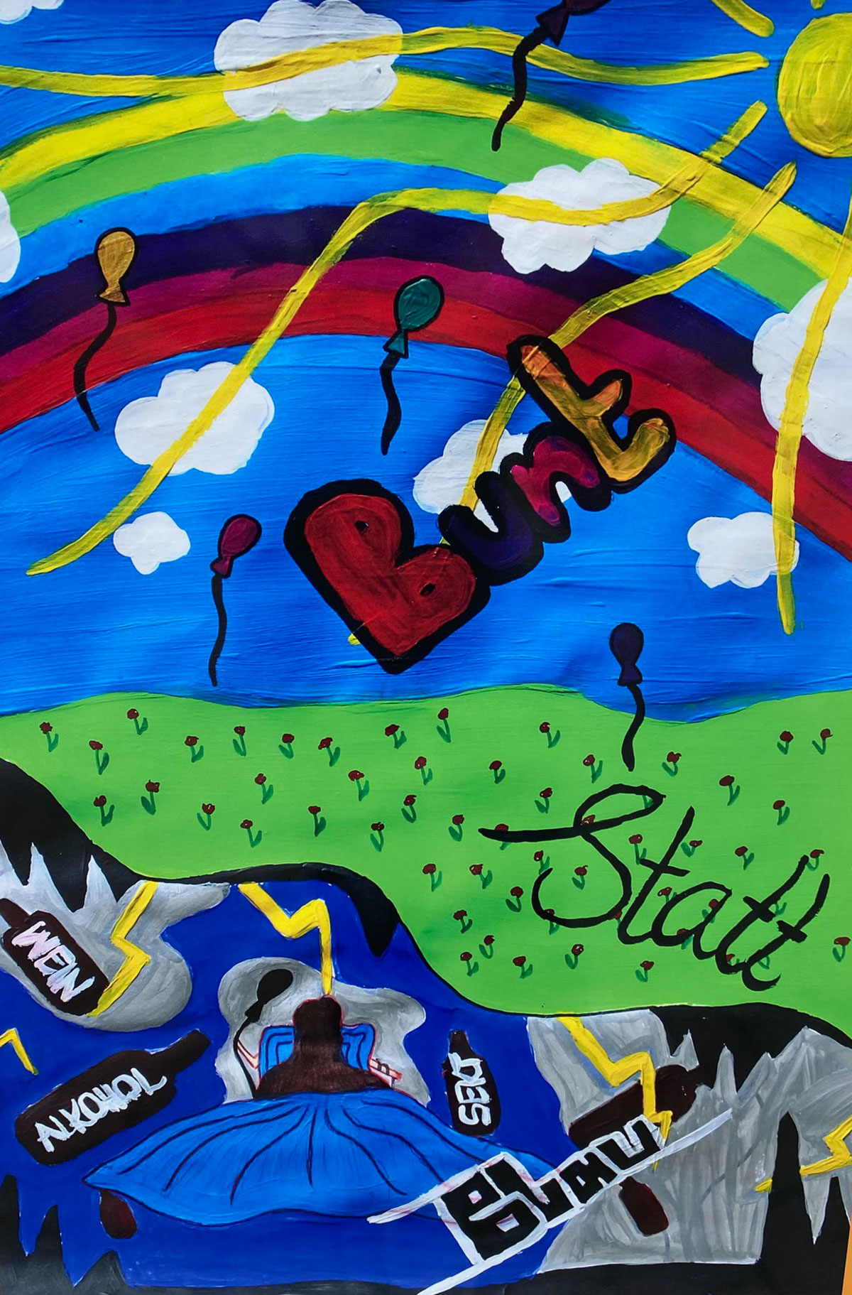 Engelskirchen – Acht junge Künstlerinnen erstellten Plakate für die DAK-Aktion „Bunt statt Blau“, die auf einem Bus die Oberberger sensibilisieren sollen.