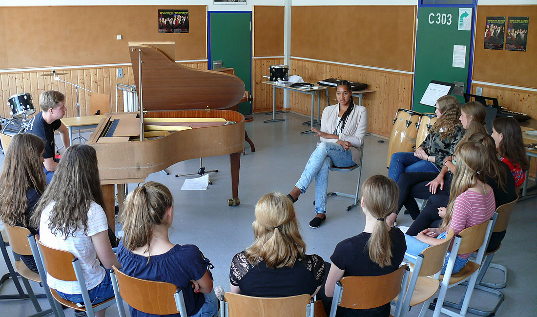 Wiehl - Im Rahmen der Feierlichkeiten zum 50. Schuljubiläum des Dietrich-Bonhoeffer-Gymnasiums nahm eine ausgewählte Schülergruppe an einem Workshop mit der bekannten Pop- und R&B-Sängerin Cassandra Steen teil.