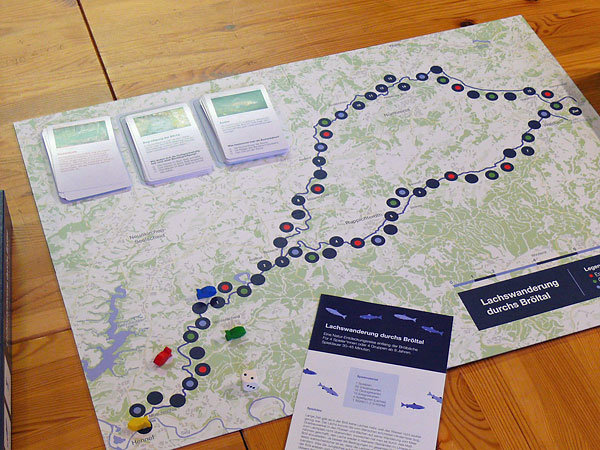 Waldbröl - Mit Förderung von LEADER, VITAL.NRW und Aggerverband ließ die Biologische Station Oberberg das Brettspiel "Lachswanderung durchs Bröltal" produzieren, das auf der Idee einer Forscherklasse der Gesamtschule Waldbröl basiert.