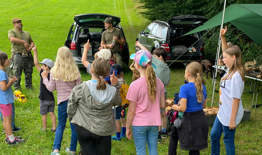 Zum zweiten Mal veranstaltete der Hegering Engelskirchen in den Sommerferien eine Waldrallye. 20 Kinder im Alter von sechs bis zehn Jahren nahmen teil. Treffpunkt war das Revier Bickenbach, das den Kindern von den Jagdpächtern für den Waldspaziergang zur Verfügung gestellt wurde. Sören Jahn-Krumtünger, Obmann für Jungjäger im Hegering, führte die Kinder zu verschiedenen Stationen. Es wurde über den aktuellen Waldaufbau für einen klimaresilienten Wald informiert, die „Ameisenpolizei“ in Form eines aktiven Ameisenhaufens erklärt, Bienenstöcke gezeigt, Wild mit dem Fernglas beobachtet und einem Apportierhund bei der Arbeit zugesehen