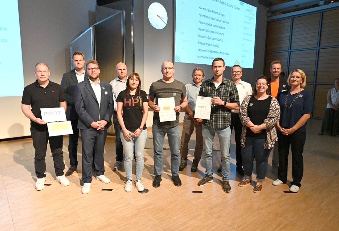 Das Hollenberg-Gymasium Waldbröl (HGW) ist kürzlich mit den Titeln "Digitale Schule" und "MINT-freundliche Schule" ausgezeichnet worden. Die Bildungseinrichtung gehörte damit zu 107 beziehungsweise 131 Schulen, die sich ebenso über die Auszeichnungen freuen durften. Heiko Kühn und Thomas Marx nahmen die Ehrungen in beiden Kategorien stellvertretend für das Hollenberg-Gymnasium entgegen, heißt es in einer Mitteilung. Die Schulen wurden unter anderem von der Ministerin für Schule und Bildung des Landes Nordrhein-Westfalen, Dorothee Feller, im Heinz-Nixdorf-MuseumsForum Paderborn ausgezeichnet. Die Auszeichnung als „MINT-freundliche Schule“ und auch „Digitale Schule“ ist jeweils drei Jahre gültig und dient als Anerkennung und Bestätigung für Schulen, die sich in besonderem Maße für eine praxisnahe MINT-Bildung oder eine fortschrittliche digitale Ausstattung engagieren.
