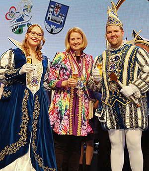 [Prinzessin Alina, Bürgermeisterin Anne Loth und Prinz Tim I. stießen auf eine stimmungsvolle Session 2024/2025 an.]