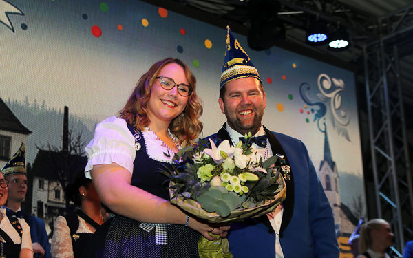 [Das Prinzenpaar der Session 2024/2025 nahm umjubelten Abschied vom Wipperfürther Narrenvolk.]
