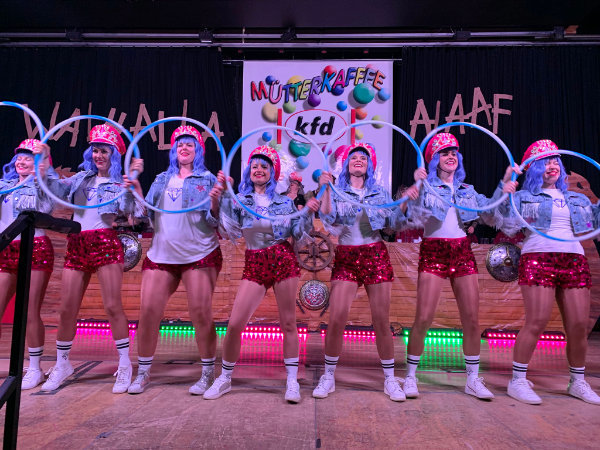 Walhalla - eine prächtige Halle im Reich der Götter – in diese verwandelten die tapferen Wickingerinnen des diesjährigen Elferrates die Scheelbachhalle beim Mütterkaffee der KFD Frielingsdorf. Die „Zuckerpuppen“ begeisterten das Publikum nicht nur mit ihren Stimmen, sondern mit einer hervorragenden Show. Die dunkle, kämpferische Atmosphäre veränderte sich schlagartig, als die Lichtinghagener Minions mit ihrer Performance zum Mitmachen animierten. Im Anschluss wurde es rockig und fetzig. Die Mädels der „Unglaublichen“ sind mit ihren Tänzen als Nachwuchsgruppe der Kajuja schon fester Bestandteil des Mütterkaffees.