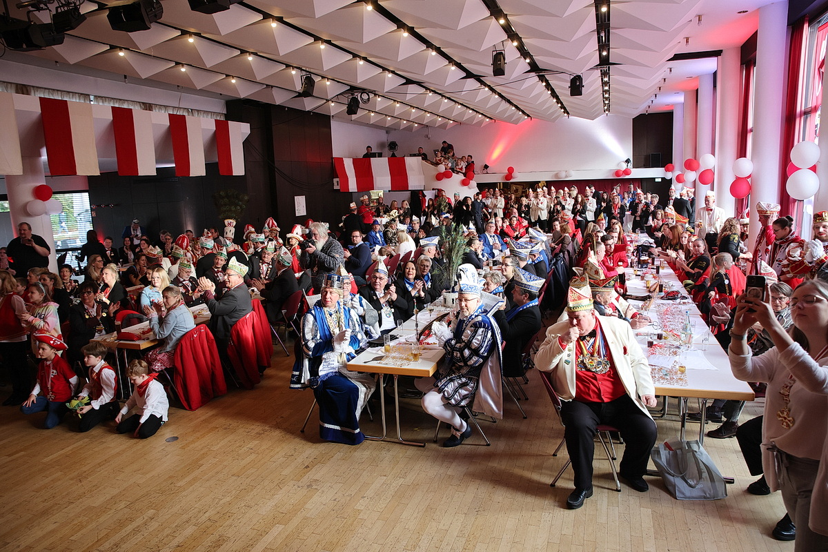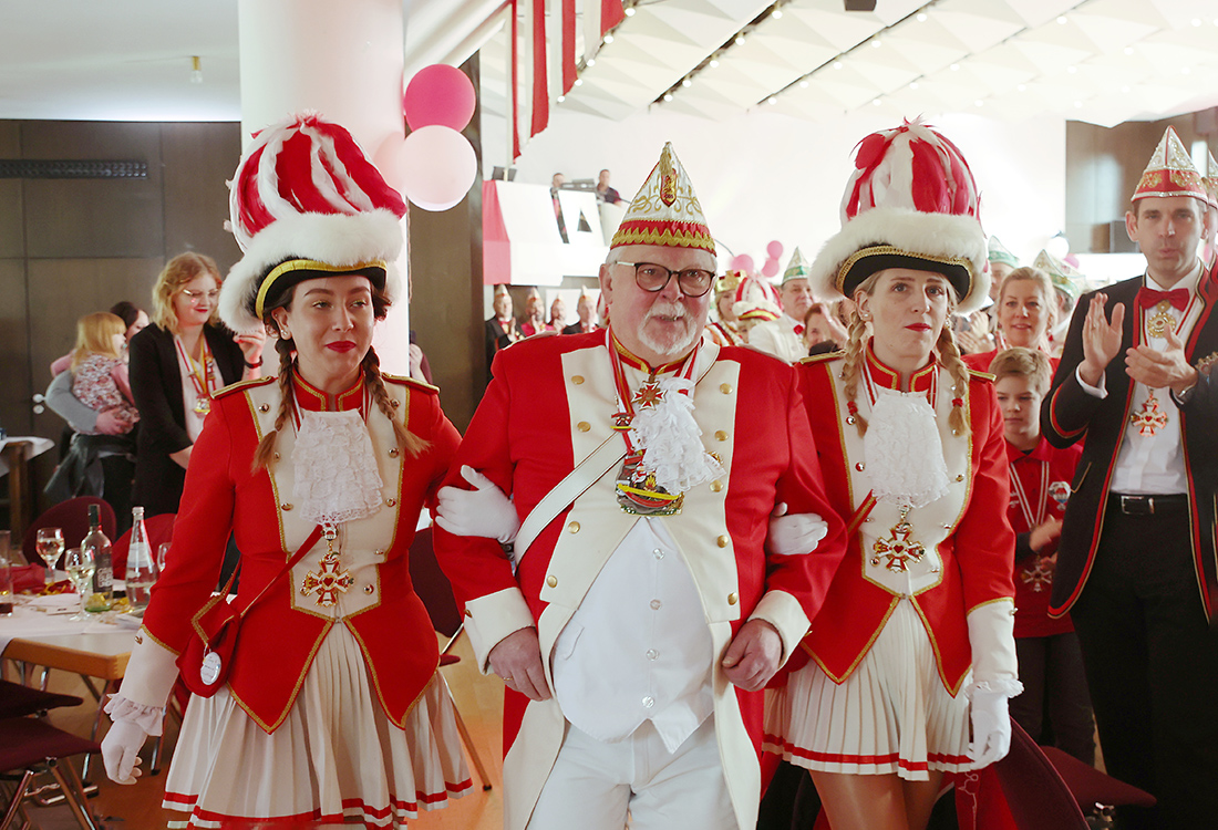 Nicht fehlen durfte bei der Verleihung im Parkhotel natürlich ein angemessenes Programm. So zeigten vor dem Höhepunkt des Tages die Burgmäuse, die Pänz von der Burg und auch die Ründerother Torwache mit dem späteren Preisträger, was der oberbergische Karneval drauf hat, und brachten den Saal auf Betriebstemperatur.