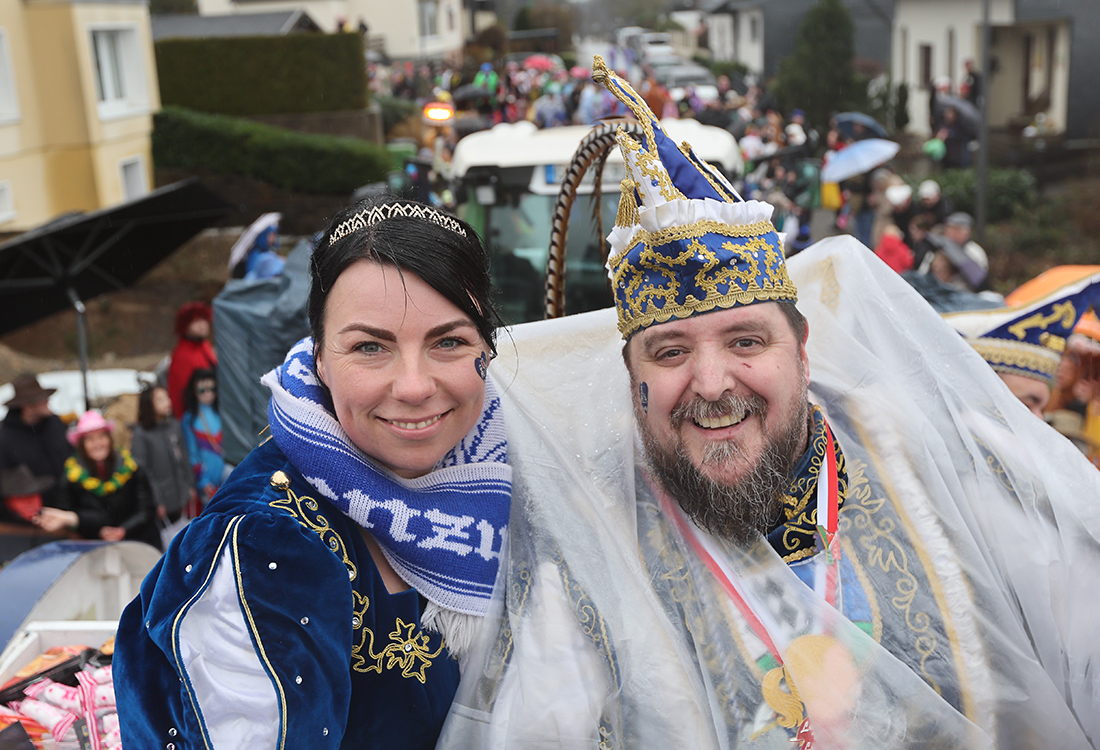 Zwei Tollitäten in einem Karnevalszug: das gab es heute in Wipperfürth zu sehen. Insgesamt zogen beim Zoch der Narrenzunft Neye 29 Gruppen durch die Hansestadt – und damit fast so viele wie vor der Pandemie. Fast drei Stunden schlängelte sich der Tross zunächst kreuz und quer durch die Neyesiedlung, ehe es für die Jecken in die Innenstadt ging. „Als Karnevalist waren das zwei katastrophale Jahre. Dass wir jetzt endlich wieder feiern dürfen, fühlt sich unglaublich gut an“, freute sich Zugmoderator Axel Brandenburg.