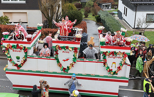 Brandenburg war einst selbst Wagenbauer und weiß, mit wie viel Engagement und Liebe die Wagen gestaltet und gebaut werden. Doch auch die Gruppen seien in dieser Session mit höheren Preisen konfrontiert gewesen. „Die Kosten für das Wurfmaterial sind um ein Drittel gestiegen. Dazu kommen noch die höheren Spritkosten“, sagte Brandenburg. Trotzdem seien in diesem Jahr wieder viele Gruppen dabei. Geworfen wurden dabei nicht nur die üblichen Kamelle und Strüssjer. Auch Blutwurst und Bananen sind in die Menge geschmissen worden.
