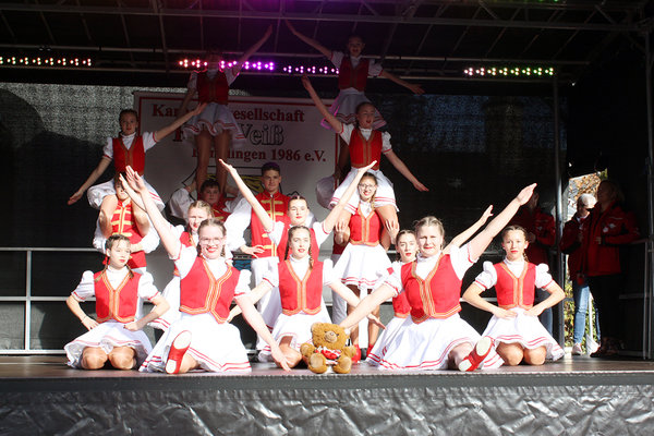 Wohl um das Wagnis wissend, sei man deshalb bei der Planung aller sieben großen KV-Veranstaltungen aufs Ganze gegangen und hoffe auf ein gelungenes Comeback des unbeschwerten Denklinger Karnevals. Dann endlich hieß es Bühne frei für die Tanzgarden des KV Rot-Weiß Denklingen, die über viele Monate hinweg regelmäßig trainierten, ohne je Tanzauftritte absolvieren zu können.