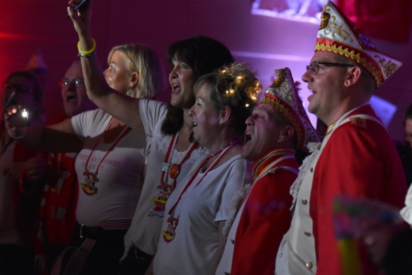Von Wolfgang Köckerling, Marcel Sausner und Kai Gissinger (Bund Deutscher Karneval) erhielten die neuen Tollitäten eine Spange überreicht, dann machten sich die drei Jungs von „Loss Jonn“ daran, den Saal mit ihrem musikalischen Mix zum Singen und Schunkeln zu bringen. Spätestens ab diesem Zeitpunkt war das Gestühl im Saal nur noch für die Wenigsten ein Sitzmöbel, denn nun sollte die Party so richtig ins Rollen kommen. „Rut sin de Ruse“ und „Alaaf und Yippie Yeah“ waren nur zwei Titel aus dem Repertoire der fünfköpfigen Band „Boore“, die begeistert mitgesungen wurden und das Prinzenpaar nicht mehr in ihrer Loge hielt.