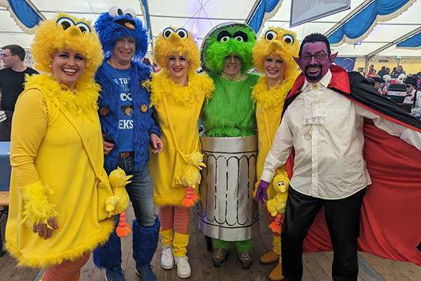 Vorfreude haben auch nach mehr als 20 Jahren die Mitglieder der Frauengruppe „Krawallas“. Da sie dieses Jahr bei der Sitzung als Sesamstraßen-Bewohner unterwegs waren, durften ausnahmsweise sogar ihre Männer mit dabei sein und ein paar Rollen übernehmen. Für sie ist der Karneval in Mueschbech „Heimatgefühl, ganz viel Herz und Freundschaft. Jeder darf hier so sein, wie er will, und jeder wird so akzeptiert.“