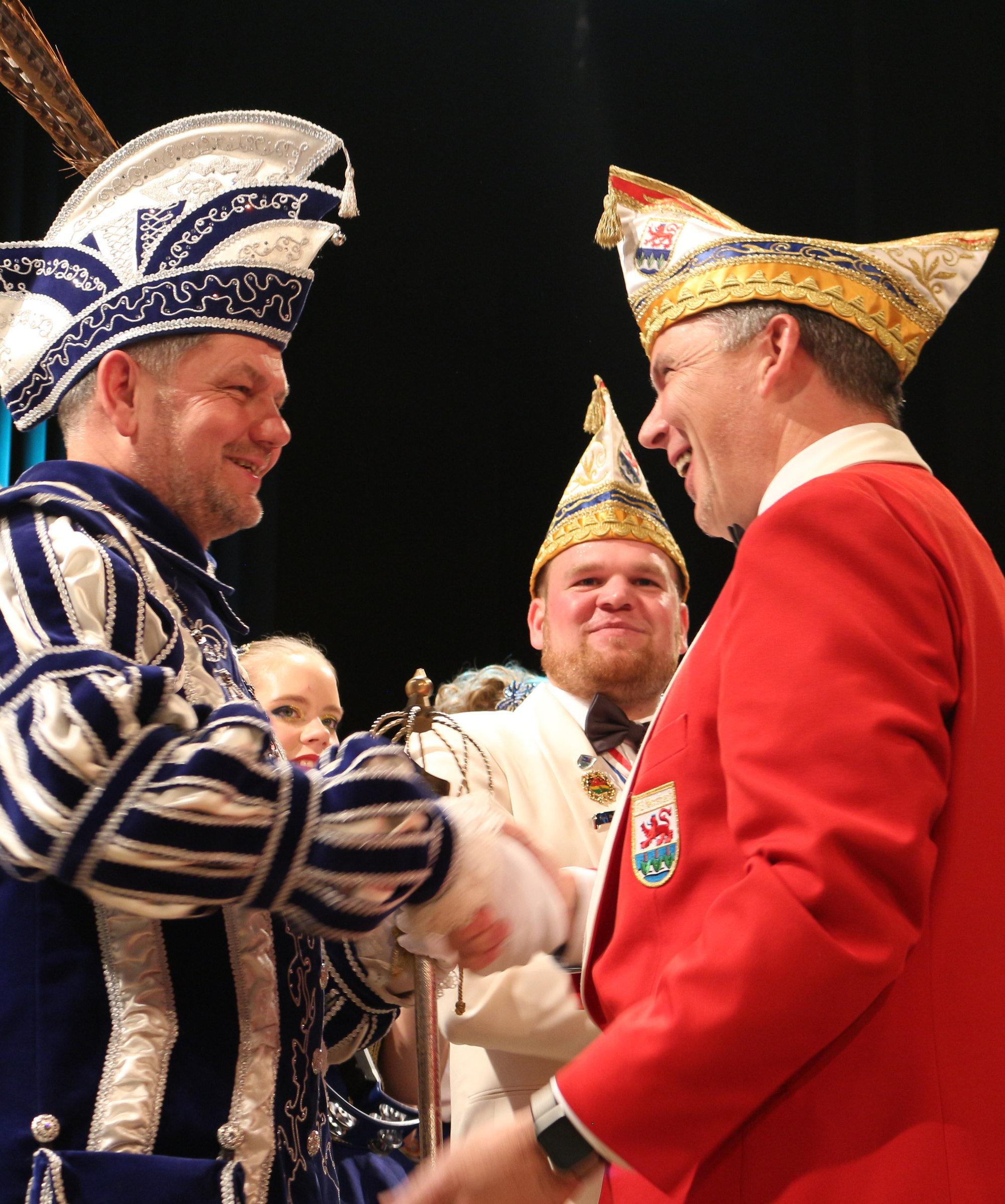 Anschließend überreichte KG-Vorsitzender Ingo Rolland dem neuen Prinzen Markus I. als äußeres Zeichen seiner Regentschaft Zepter, Kappe und Orden. Damit übernimmt er als 69. Tollität die Regentschaft. Zu den ersten Gratulanten und Empfängern des Prinzenordens gehörten Helds Frau Doreen und seine Eltern sowie Sigrid Stark, Vertreterin des Kulturverbands. Sie entschuldigte den erkrankten Bürgermeister und sprach dem stattlichen Prinzen die volle Unterstützung vonseiten der Gemeinde und des Gemeindekulturverbands zu. Danach präsentierten sich 14 befreundete Gastvereine mit ihren Garden und Tanzgruppen.