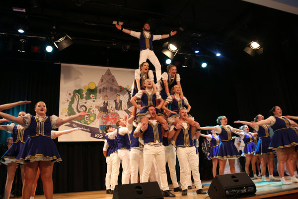 Ein besonderer Höhepunkt war der Auftritt der Morsbacher Funkengarde (Foto) unter dem Kommando von Speis Joshua Hasenpflug. Mit Synchronität, Hebefiguren und fliegenden Tänzerinnen sorgten sie für ein fasziniertes, teils emotional ergriffenes Publikum und erhielten dafür neben nicht endendem Applaus auch ein besonderes Lob von Wolfgang Köckerling, dem Abgesandten des BDK (Bund Deutscher Karneval). „Ihr seid reif für deutschlandweite Meisterschaften, und ich glaube, ihr habt große Chancen, die mit Erfolg zu meistern“, schwärmte er. Für diesen Erfolg trainiert die Funkengarde, bestehend aus zwölf Funken und 23 Mariechen, zweimal wöchentlich unter der Regie von Steffi Krämer und Jaqueline Dünzer.