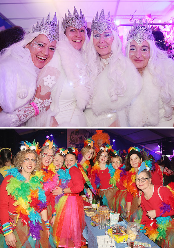 Keine Zeit zum Durchatmen blieb den fantasievoll kostümierten Ladies, denn die fünf Jungs von Cat Ballou machten mächtig musikalischen Betrieb im „Mueschbecher Gürzenich“. Zu „et jitt kein Wood“, „auf die gute Zeit“ oder „Eau de Cologne“ lieferten die Musiker um Frontmann Oliver Niesen eine tolle Bühnenshow, während der Morsbacher Background-Chor auf den Bänken tanzte und das Zelt in die heißeste Partylocation nördlich der Alpen verwandelte. „Boah ihr könnt feiern“, zeigten sich die Kölsch-Rocker beeindruckt von der Damen-Performance.