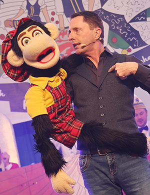 Flotte Sprüche hatte Klaus Rupprecht mit seiner Handpuppe Willi (Foto) auf Lager. Er bildete den Auftakt für die Säulen des gepflegten und manchmal auch ungepflegten Humors. Verlassen durften sich die Gäste auch auf Annäherungsversuche von Willi und Ernst. Willi hielt direkt nach Andrea Ausschau, die er im vergangenen Jahr hier kennengelernt hatte. „Warum hast du dich nie gemeldet?“ Die Angebetete, natürlich auch dieses Jahr wieder bei der Sitzung dabei, wurde von Willi kurzerhand links liegengelassen, und er suchte sich eine neue. Deren Name: wieder Andrea. Das Duo hatte die Lacher auf ihrer Seite. Krank abgemeldet hatte sich kurzfristig Lieselotte Lotterlappen, alias Joachim Jung. Machte aber nichts: Sein Ersatz Jörg Hammerschmidt lieferte ab.