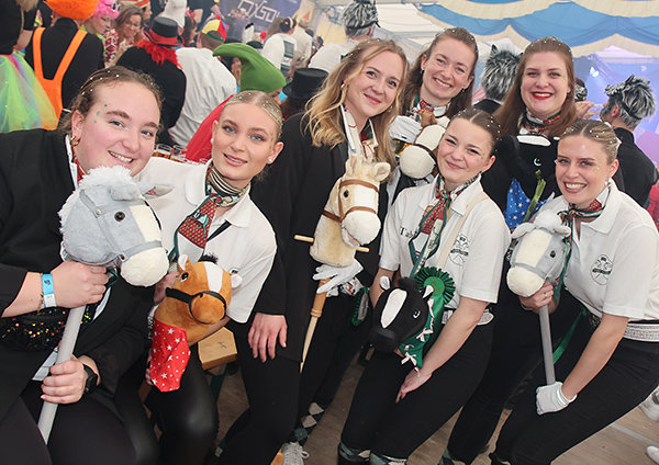 Mindestens so wichtig wie das Engagement der KG und der Vereine ist selbstredend das Herzblut der Gäste, das diese in ihre Kostüme und einen gelungenen Abend stecken. Der SV Morsbach könnte bald schon um eine Hobby-Horsing-Gruppe reicher sein, wenn es nach der siebenköpfigen Frauentruppe um Lorina und Marie geht. Im vergangenen Jahr noch als Rennfahrerinnen am Start, haben sie sich bei TikTok von der Trendsportart Hobby-Horsing begeistern lassen und ihre Steckenpferde für die Sitzung gesattelt. „Es soll jedes Jahr auch ein bisschen verrückt sein.“