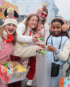 Die „Beer Bitches“ hatten sich mit ihrer Skisprungschanze den Olympischen Winterspielen verschrieben und für die „Kolping Jugend“ ging es mit Popcorn ins Kino. Nicht fehlen durfte natürlich der Persiflagewagen auf den Einbruch in die Sparkasse in Gelsenkirchen. Die „Partyvögel“ versprachen jedenfalls: „Wir bringen ihre Schäfchen ins Trockene“. Apropos Schafe: Der Damen-11er-Rat der KG Windhagen war als Schafsherde von Prinzessin Liya I. unterwegs. Musikalisch untermalt wurde das Ganze von der Mariachi-Band des Morsbacher Kegelclubs „Knall Drop“, die nach den fliegenden Hinkelsteinen im Vorjahr, sich in diesem Jahr vorgenommen hatte, „die Senioritas der Republik mit Rhythmus im Blut zu verzaubern“.