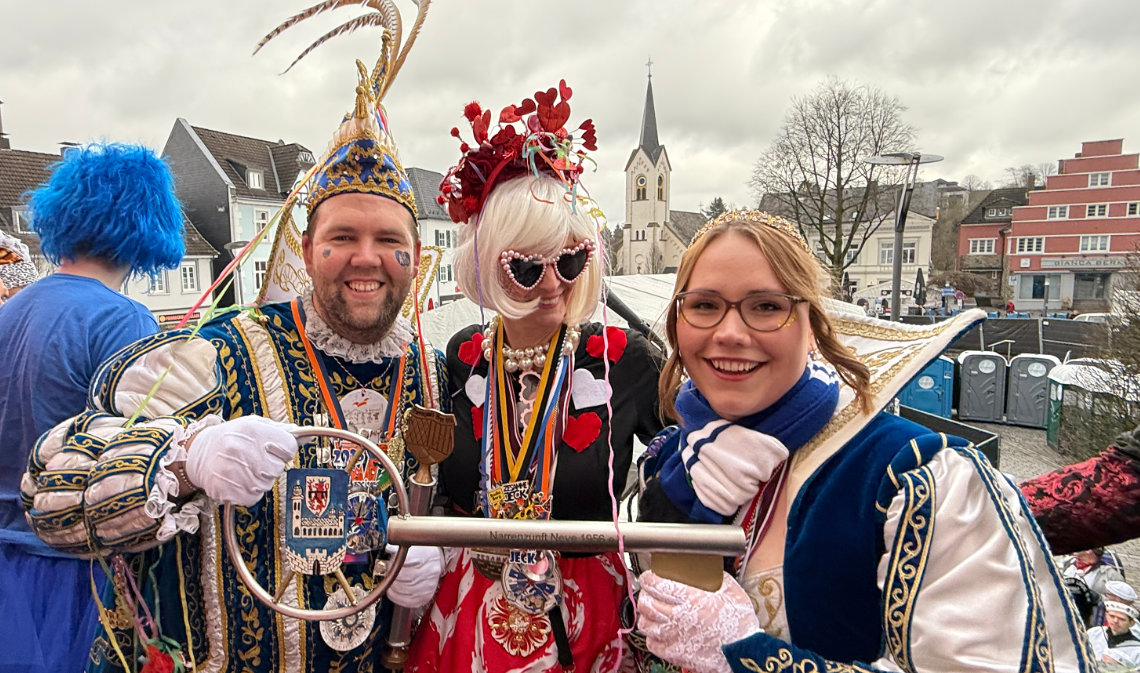 Gefeiert wird zur Stunde noch im Rathaus, ehe die Jecken am Nachmittag auf das Festzelt am Marktplatz umziehen. Der Straßenkarneval ist seit heute Morgen eröffnet.
