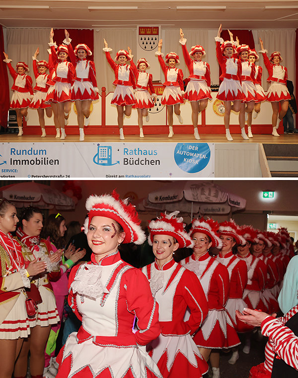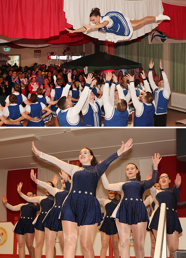 [Heimische Tanzvielfalt: Oben die Tanzmäuse aus Bielstein, unten die Tanzgarde der KG "Tolle Elf " Wildberg bei ihren Showtänzen in Belmicke.]
