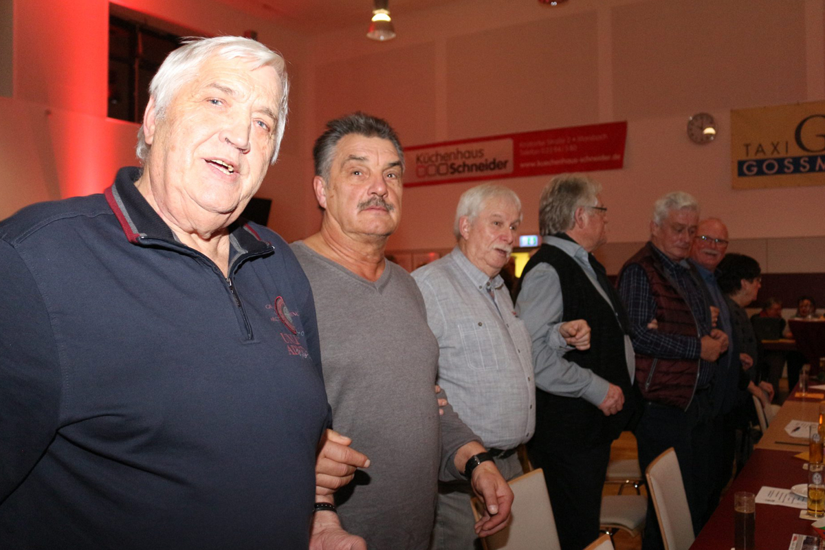 Ehrungen: Im Rahmen des Bunten Abend wurden folgende Sänger für ihre lange Mitgliedschaft geehrt: für 25 Jahre die Sänger Marc Baldus, Manfred Schausten und Daniel Schneider und für beeindruckende 70 Jahre Rudi Wagner und Manfred Hammer. Für 40 Jahre Vorstandstätigkeit als Kassierer wurde Uli Bender geehrt.