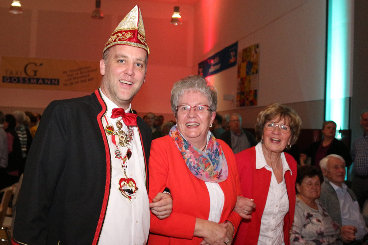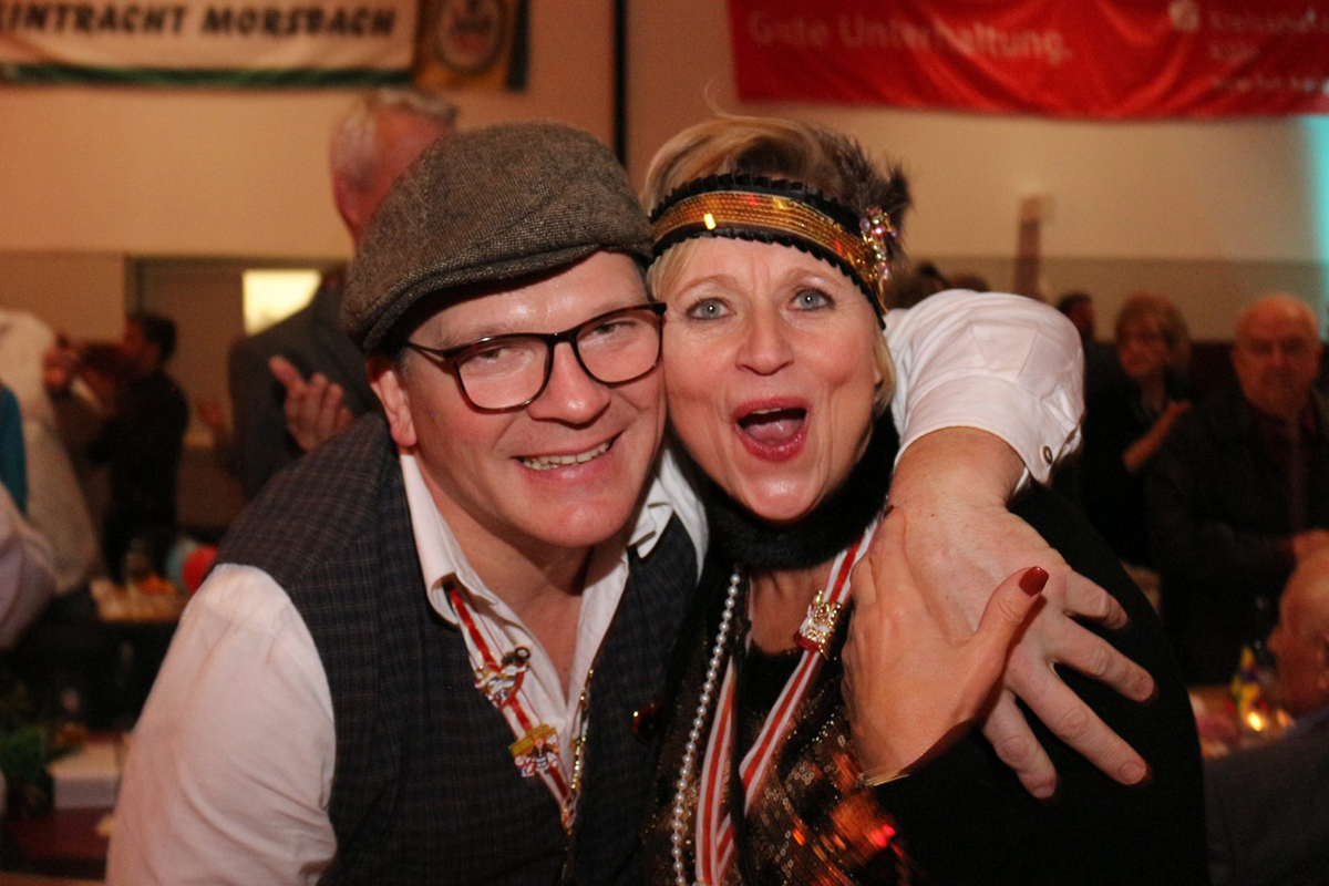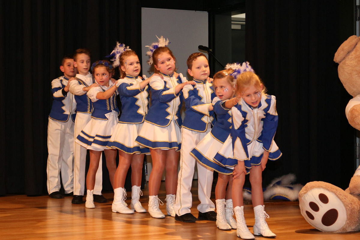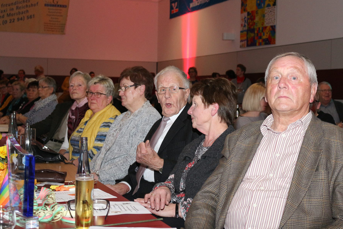 Zu dem Song „Keine Panik auf der Titanic“ zog die KG Denklingen mit ihrem Prinzenpaar, dem Hofstaat und der Garde in die Kulturstätte ein. Das Motto von Prinz Rüdiger I. und Prinzessin Caroline lautet „Titanic 2.0 – Op Kurs a Levve lang“. Die schmucke Garde zeigte ihre fetzigen Tänze und nach romantischen Liedbeiträgen zog die große rot-weiße Schar wieder von dannen. „Vorhang auf und Bühne frei“ hieß es für einige Damen des Frauenchors Cantabile Morsbach. Auf den Spuren der Sesamstraße und der Muppet-Show begeisterten sie die Zuschauer mit einem bunten Puppentheater. Die Performance des Chorteams mit selbst gestalteten Handspielpuppen auf das Lied „Manamana“ ließ kein Auge trocken. Ein weiterer Höhepunkt des Abends war der Auftritt der Wolpertinger. Sie zeigten in maritimen Kostümen die Premiere ihres neuen Tanzes „Wolpis goes Navy“ und kassierten begeisterten Applaus. In Gedenken an den ramponierten „Rähn Willem“ sang die vereinseigene Gruppe der Eintracht „Bel Kantholz" auf das Lied von Kasalla „Alle Jläser huh“ - „Alle Schirme op“.