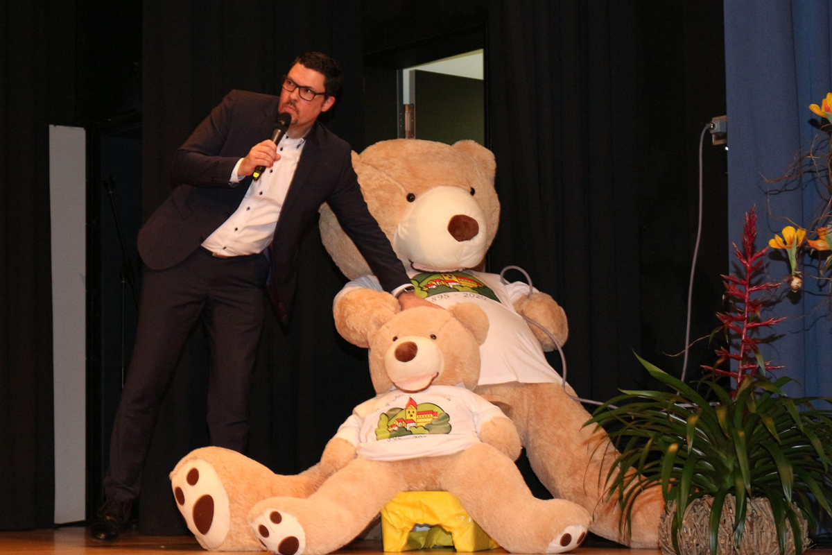 In diesem Jahr feiert die Gemeinde Morsbach das 1125-jährige Bestehen. Welche Höhepunkte auf die Bürger warten, erläuterten Bürgermeister Jörg Bukowski und Werner Puhl, Vorsitzender des Gemeindekulturverbands. Unter dem Motto „Die Republik im Aufbruch - Vergangenheit, Gegenwart, Zukunft - 1.125 Jahre Morsbach" werden die Veranstaltungen stattfinden. „Dieses Jahr wird ein ganz besonderes Jahr“, waren sich die beiden einig. Die beiden großen „Morsbären“ aus Stoff, Bruno, 2,60 Meter groß, und Bodo, 1,30 Meter groß, werden alle „bärenstarken“ Veranstaltungen in der Kulturstätte begleiten.