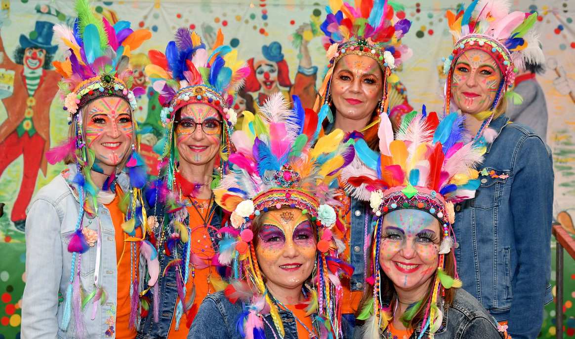Danach folgte mit dem Auftritt der Kult-Band „Cat Ballou“ der erste Kreisch-Alarm des Tages und zu „Mer fiere et levve“ erhoben sich alle Weibsbilder von den Stühlen und recken die Hände in den Himmel. Zu den Tönen von „Immer immer widder“ wurden Sitzplätze überflüssig und vor der Bühne sorgte ein Durcheinander von Flower-Power- Ladies, Marienkäfern, Rockerbräuten, Fledermäusen und Cow-Girls für ein dichtes Tanzflächen-Gedrängel. Raderdolle Alter Egos feiern ausgelassen das Leben und entpuppten sich als textsicherer Mädchenchor, der das Stimmvolumen der fünf Kölschrocker von „Cat Ballou“ potenzierte.