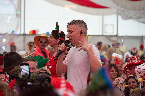 „Denn du bist 'ne echte Kölsche“ hatten „Stadtrand“ mit dabei. Wichtig ist der Band eins: Karneval bedeutet Kölsch, aber Kölsch bedeutet nicht nur Karneval. Diesmal hatte die sympathische Band, die 2018 mit „Orjenal“ bekannt wurde, gleich zwei neue Singles am Start: „Ahle Kess“ und „Alles för die Liebe“. Und wer konnte die perfekt mitsingen? Natürlich die Jecken in Denklingen. „Stadtrand“ war zum ersten Mal in der närrischen Hochburg im Süden des Oberbergischen, aber sie versprachen: „Wir kommen gerne wieder.“
