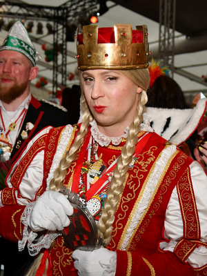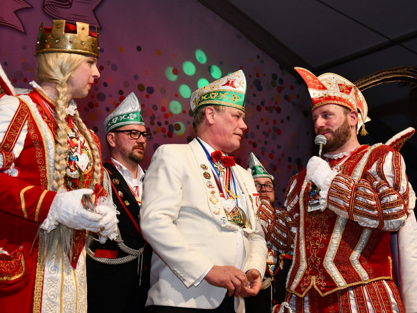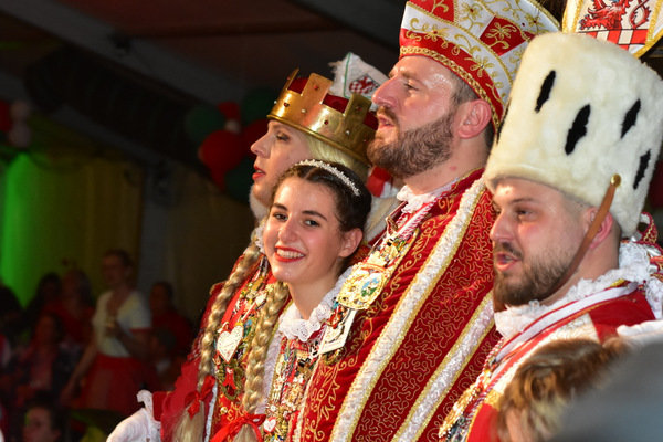 Frontfrau Nici Kempermann freute sich ob des bunten Hintergrunds und wirbelte in gewohnter Manier über die Bühne. Das Tanzkorps übernahm anschließend wieder - gut erholt nach der kurzen Verschnaufpause. Das Finale nach den emotionalen Worten an den Vorsitzenden Gries gehörte den Tollitäten Prinz Tim I., Bauer Adi und Jungfrau Sissi mit ihrem Schmölzchen. Sie legten eine flotte Sohle aufs Parkett, dem sich im Verlauf auch die Mitglieder des Tanzkorps anschlossen. Für die passende musikalische Untermalung und die Tuschs zum stets richtigen Zeitpunkt sorgte an diesem Tag die Band „Partyexpress Cologne“.