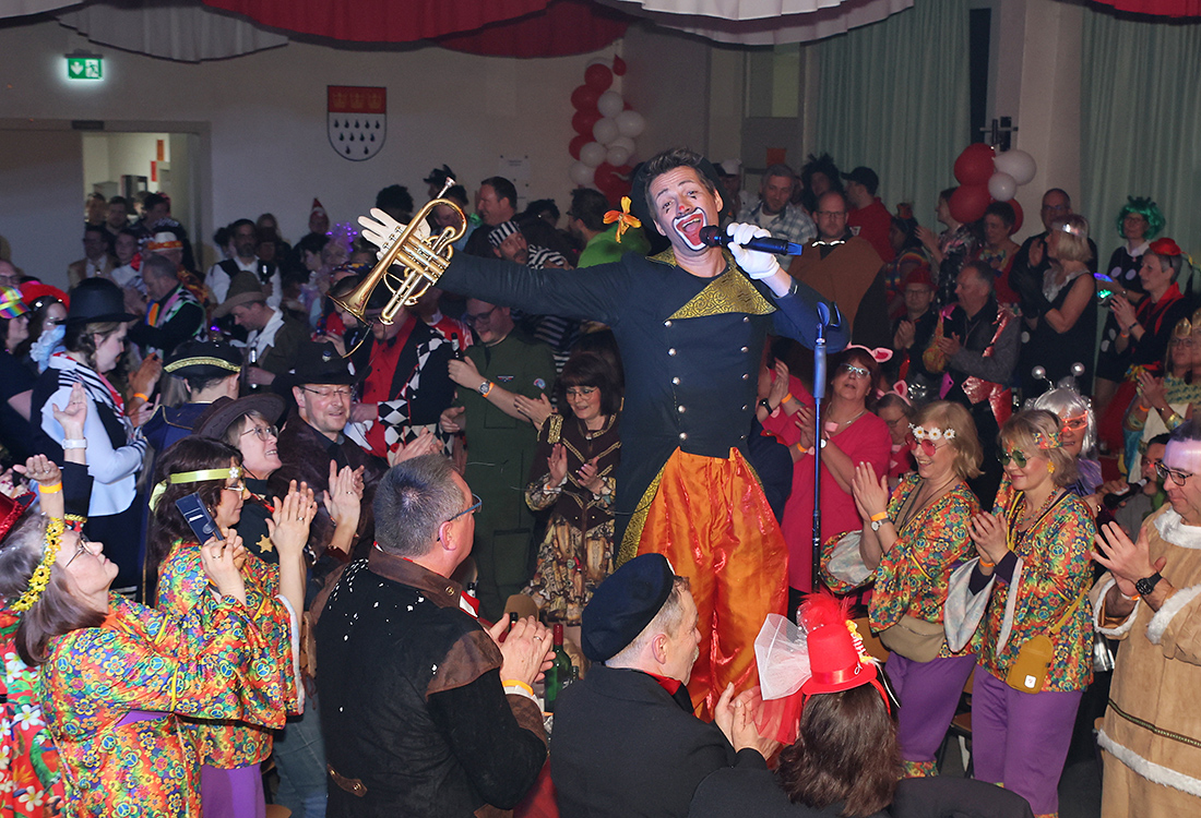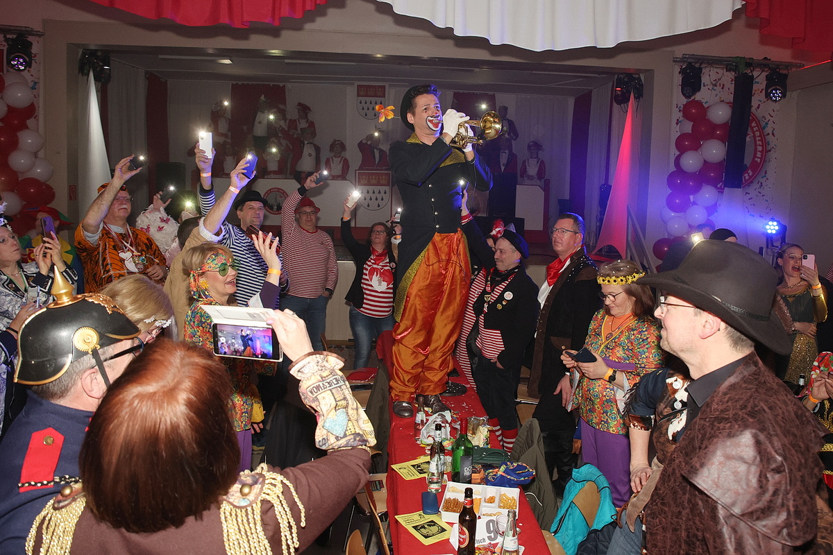 Bruce Kapusta, der Clown mit der Trompete, ist auf der Belmicke ein gern gesehener Gast. Er sorgte mit seinem Karnevals-Medley für eine fröhliche, teilweise aber auch melancholische Stimmung unter den rund 300 Anwesenden. Die Tanzgruppen aus Olpe, Schönau und Frenkhausen zeigten neben den Altstadtladies aus Drolshagen für flotte Tänze. Den Abschluss der fünfstündigen Sitzung bildete der Auftritt der Funkengarde, stimmgewaltig untermalt von Tomasetti und dessen designiertem Nachfolger Kevin Mankel.