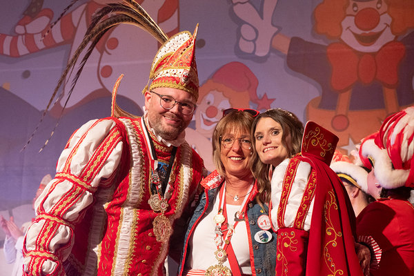 [Als persönliche Adjutantin der Prinzessin Lisa war Beate Riehl (Mitte) seit Beginn der Session mit dem Prinzenpaar unterwegs und natürlich bei der Prunksitzung mittendrin.]
