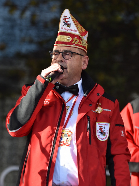„Endlich wieder normal Karneval feiern“, lautete der Tenor vieler aktiver Karnevalisten und Besucher der Sessionseröffnung auf dem Lindlarer Marktplatz, nachdem man zuletzt auf Sparflamme gefeiert hatte. Neben vielen vereinseigenen Kräften hatten sich befreundete Vereine aus dem Oberbergischen eingefunden. Den Eisbrecher auf der Bühne machten die Jüngsten der fünf Tanzgruppen der KG. Klatschend angefeuert von den mitgereisten Eltern oder Großeltern, hüpften sie fröhlich zur Musik auf der Bühne. Dem standen die weiteren vier Gruppen bis hin zu den „Großen“ in nichts nach. Insgesamt rund 80 aktive Tänzerinnen und einen Tänzer zählt man inzwischen in den eigenen Reihen.
