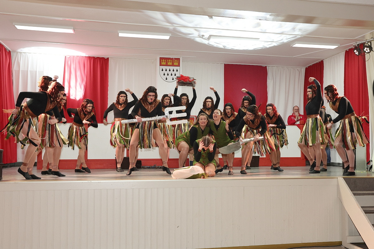 Aus dem Oberbergischen besuchte die Showgarde Wildberg das Anna-Heim. Die Gruppe fühlte sich in der Coronazeit eingesperrt und tritt nun als „Die Flüchtigen von Wildberg“, die aus dem Gefängnis ausgebrochen sind, auf. Nach vielen weiteren Garden und Funkenmariechen standen die „Kannibalen“ aus Helden bei Attendorn auf der Bühne und ließen die Zuschauer „erschaudern“. Anschließend hieß es „Partytime“ mit DJ Fabian Köppe bis tief in die Nacht hinein.