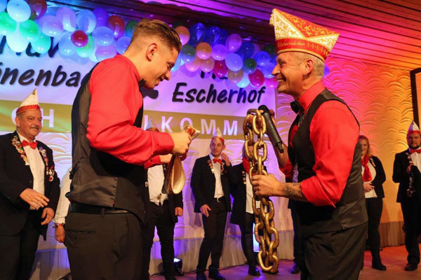 Auch bei den Schönenbacher Karnevalsfreunden ist kürzlich der Startschuss für die neue Session gefallen. Nach 21 Jahren Amtszeit verabschiedete sich Präsident Thomas Kardel und übergab den Staffelstab an seinen Nachfolger Tim Duisberg. Mit Pauken und Trompeten sowie einer Lobeshymne und eigenem Liedgut sagten die Schürmicher Jecken dem alten Chef „Adieu“.