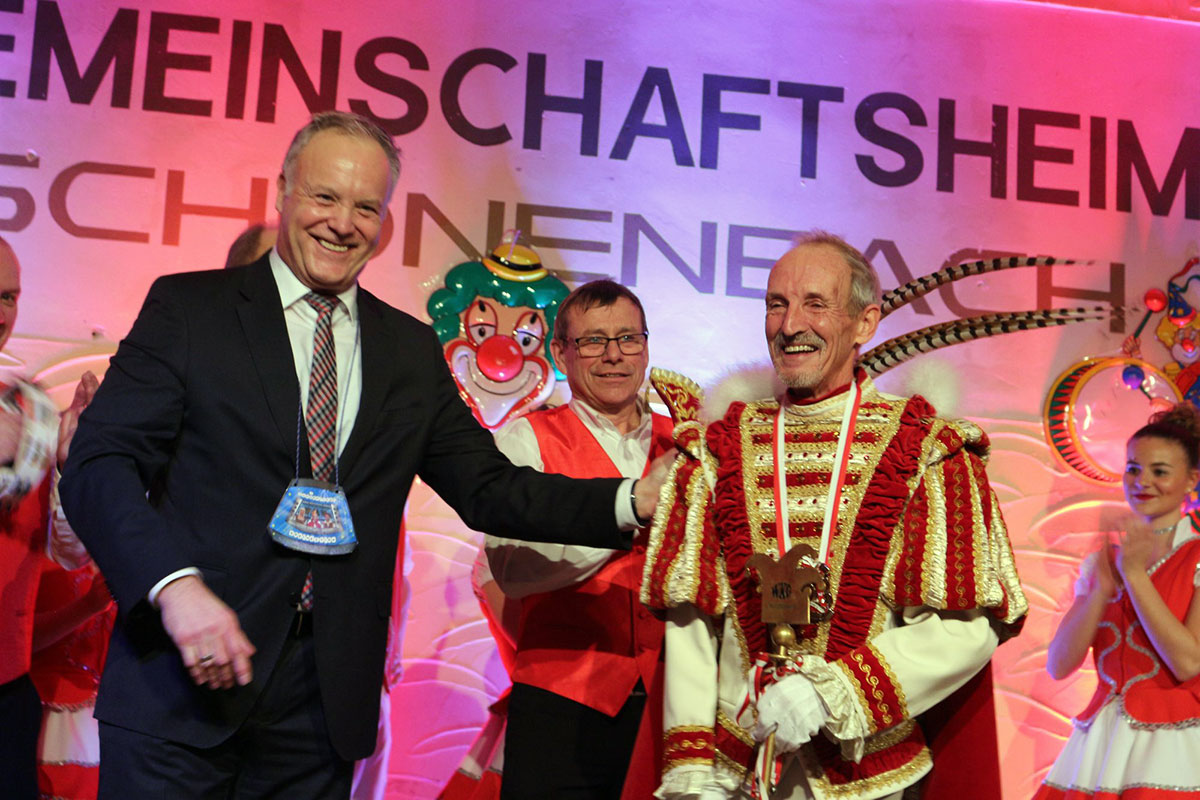 Unter großem Jubel der Gäste und in Begleitung seines Gefolges sowie weiterer Mitglieder der WKG, genoss Prinz Manni I. winkend undStrüßjer werfend den Triumphzug zur Bühne. Nach dem Empfang der Insignien durch Bürgermeister Peter Koester wurde der neue Prinz proklamiert und mit einem dreifachen „Waldbröl - Pass op“ gefeiert.